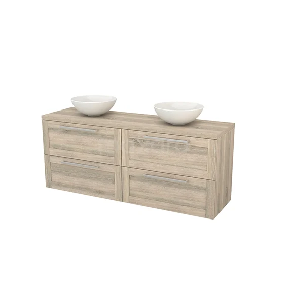 Modulo+ Plato Vanity units for countertop basin | 160 cm Oak Bordered front Oak worktop 4 drawers