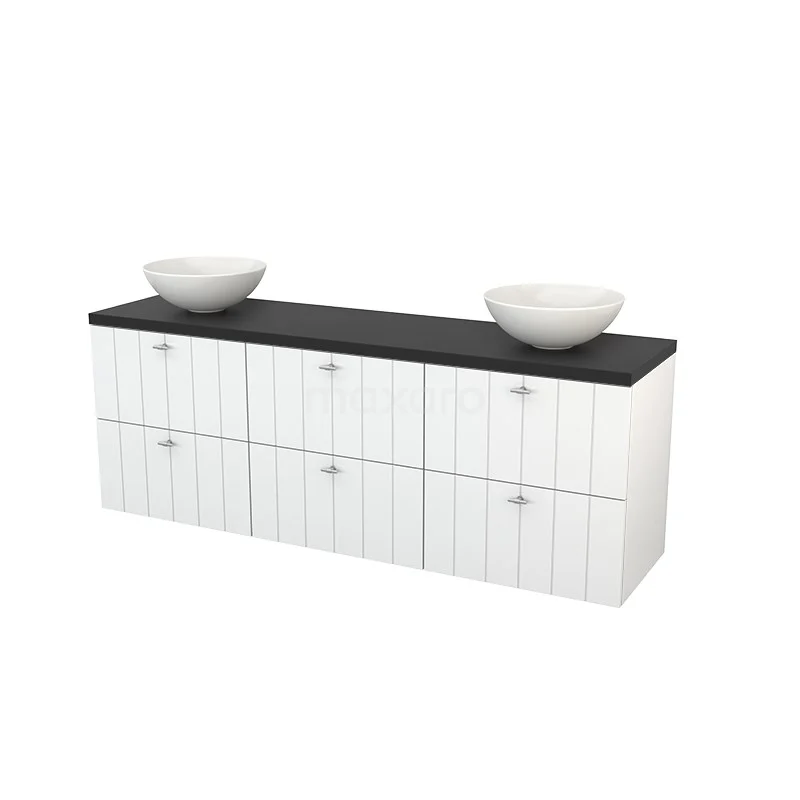Modulo+ Plato Vanity units for countertop basin | 180 cm High-gloss white Slat front Carbon worktop 6 drawers