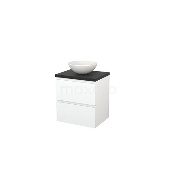 Modulo+ Plato Vanity units for countertop basin | 60 cm Matte white front Carbon worktop 2 Stacked drawers