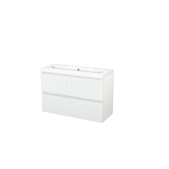 Modulo+ Slim Bathroom furniture with sink | 100 cm High-gloss white front Mineral marble 2 Stacked drawers