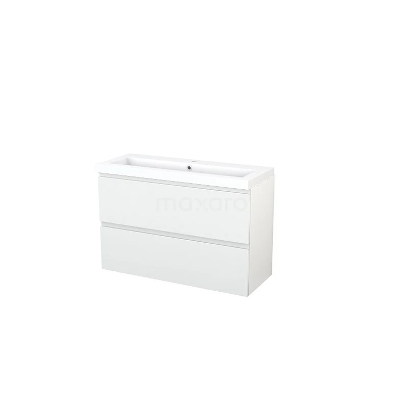 Modulo+ Slim Vanity units with basin | 100 cm High-gloss white front Mineral marble 2 Stacked drawers