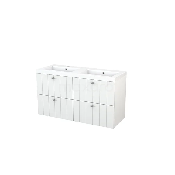 Modulo+ Vanity units with basin | 120 cm High-gloss white Slat front Mineral marble 4 drawers