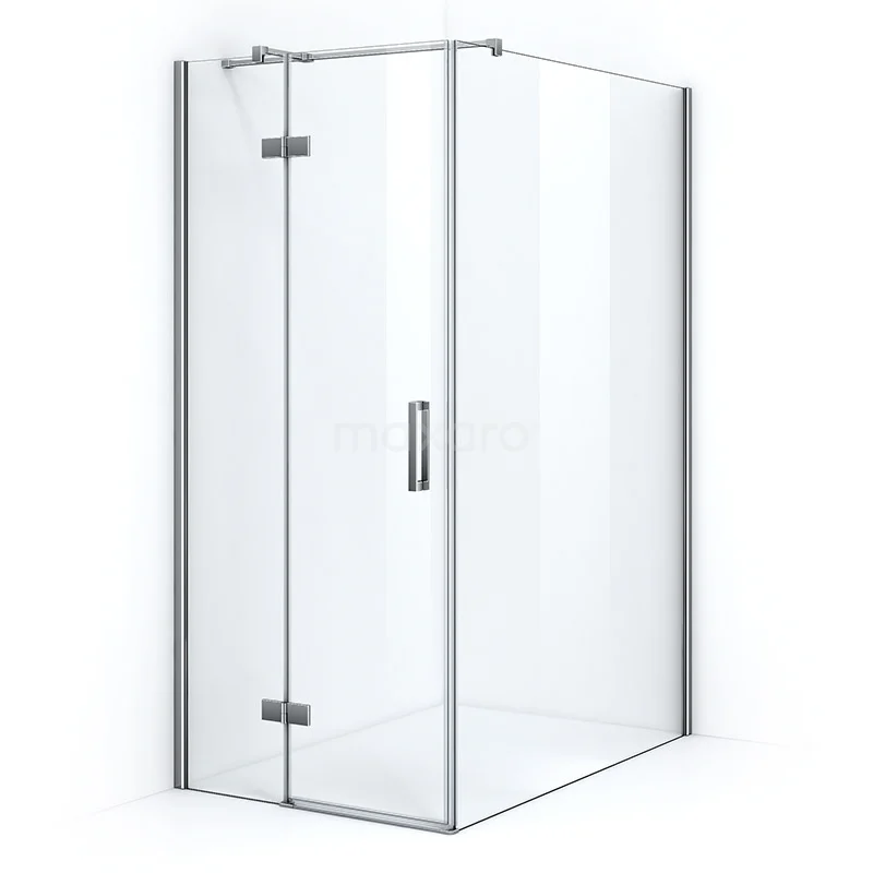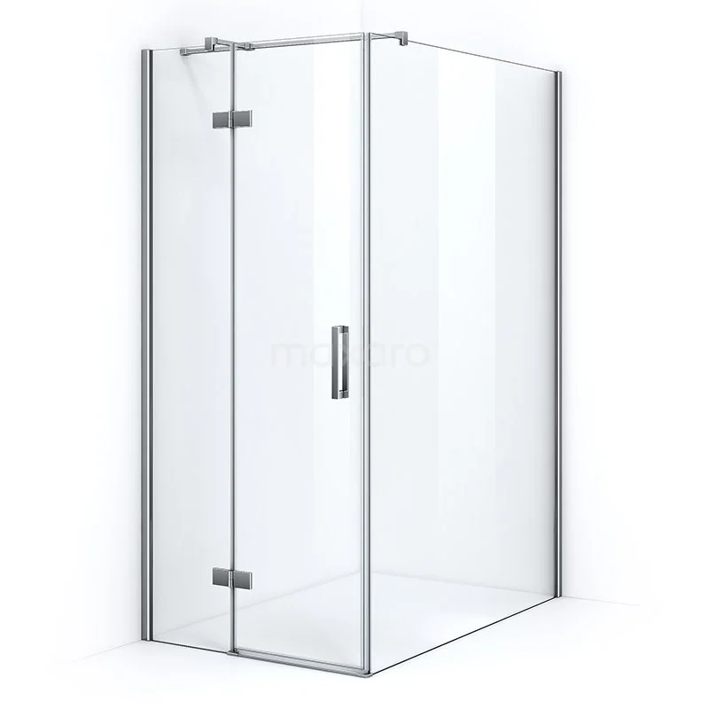 - Shower enclosure fitted with 1 fixed wall with door and 1 fixed wall without door