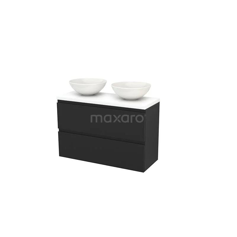 Vanity units for countertop wash basin 100cm Modulo+ Plato Slim Carbon 2 Drawers Handle-less High-gloss white Worktop