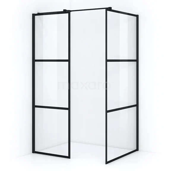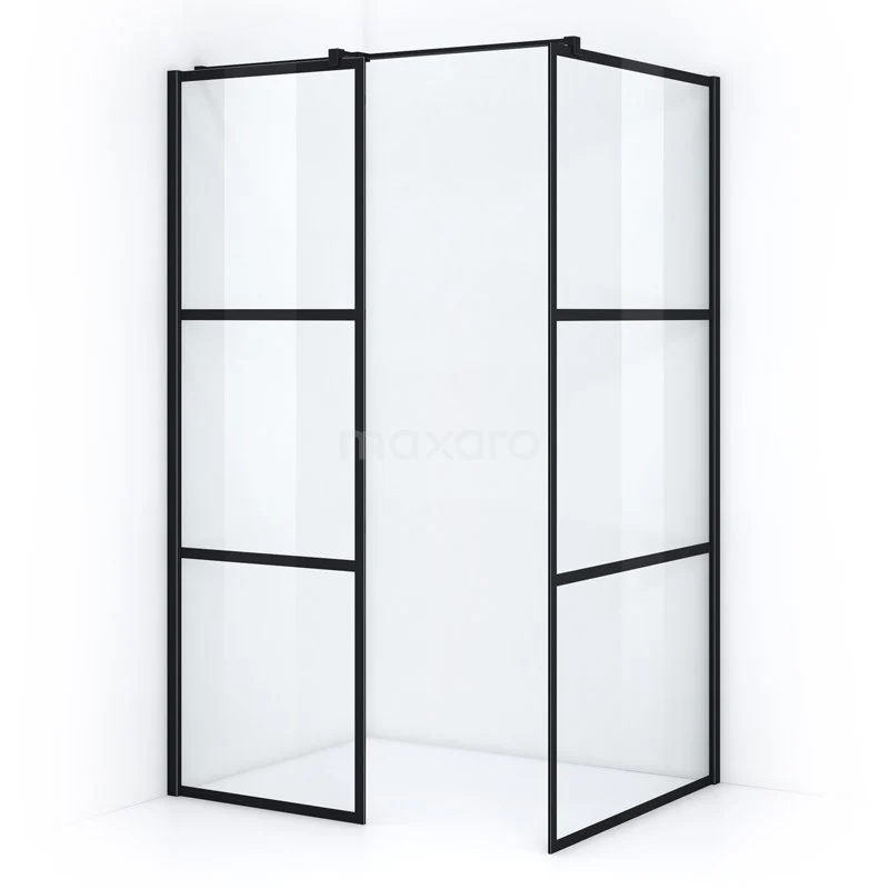 - 2 Fixed walls with wall profile and stabilising bar with T-piece, for connecting 2 glass walls.