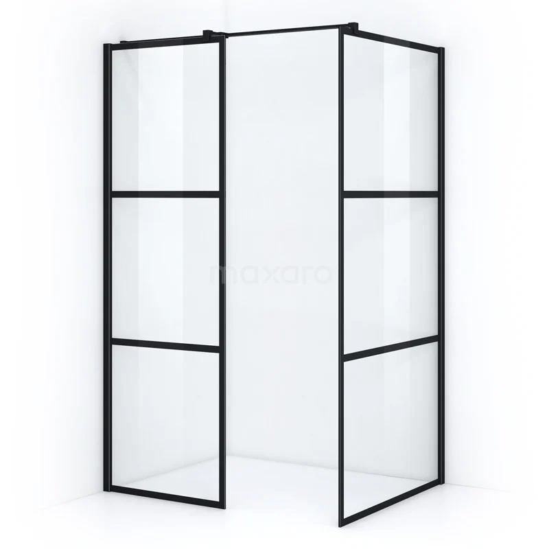 Walk-in shower 100x80cm Black Stripes Safety glass 8mm Matte Black