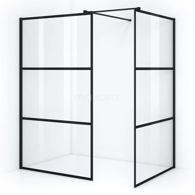 Walk-in shower 120x120cm Black Stripes Safety glass 8mm Matte Black