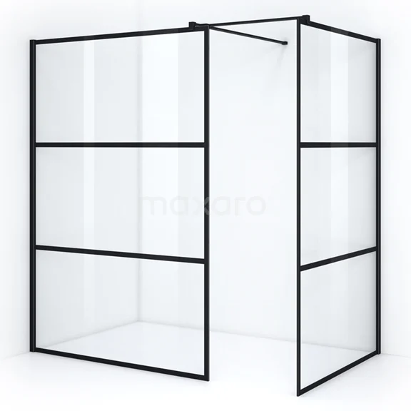 Walk-in shower 140x120cm Black Stripes Safety glass 8mm Matte Black