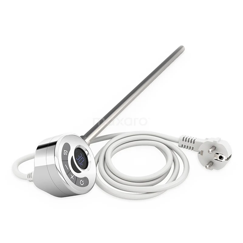 This chrome, thermostatic heating element serves to heat rooms with a towel radiator. The element has an output of 900 watts and is suitable for almost all Maxaro towel radiators. In addition, it is easy to connect via the underside of the radiator. For optimal use, we recommend combining the heating element with our infrared remote control EAB001WZ.