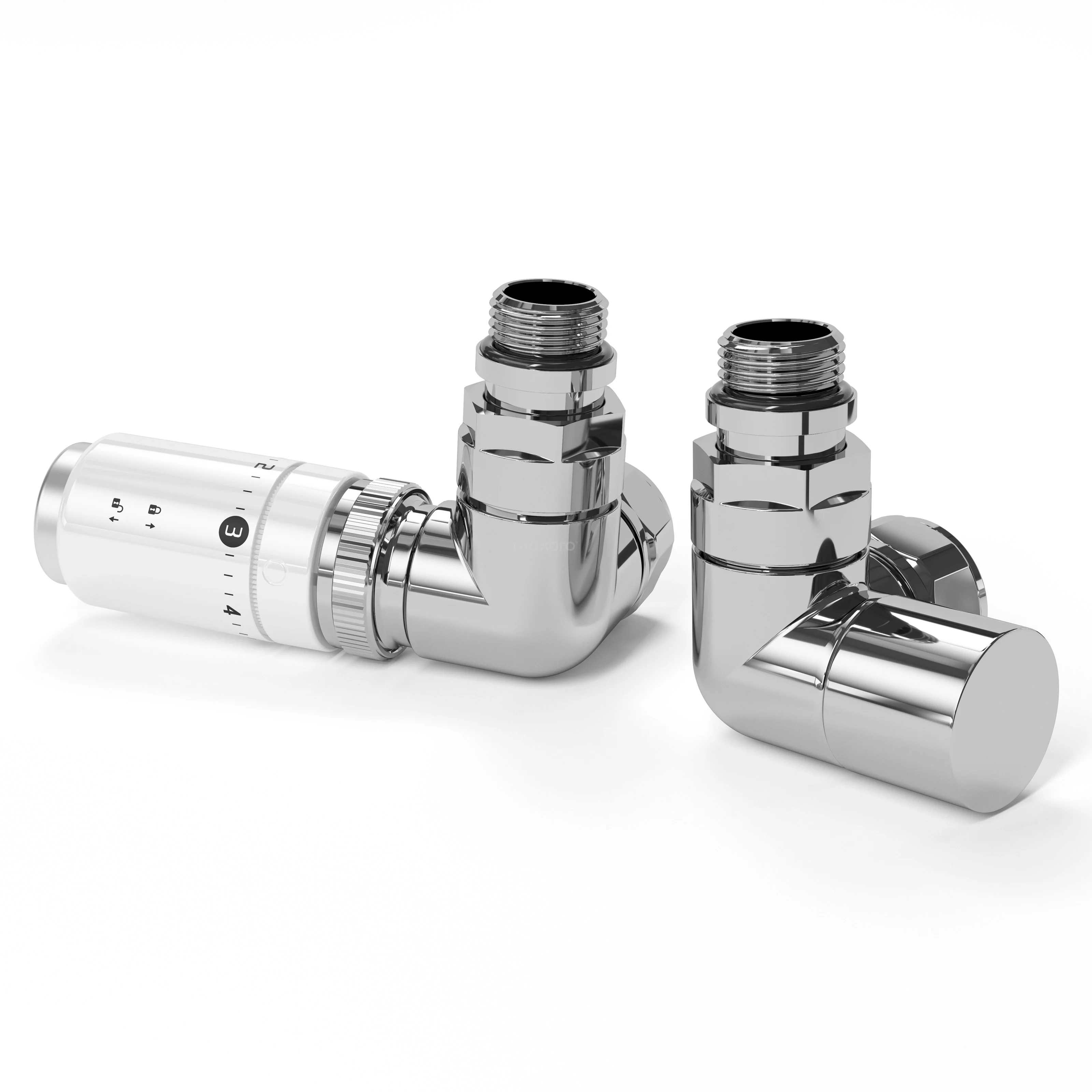Radiator valve Thermostatic Dual Angle Left Hand With Foot Valve Chrome High-gloss white