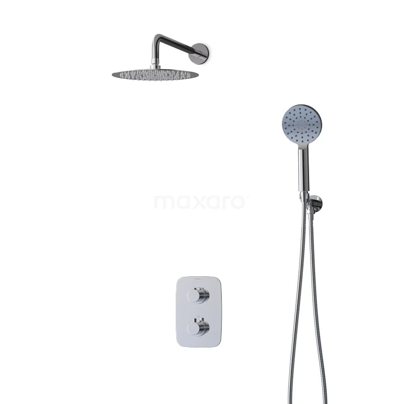 This concealed rain shower set from the Balance Series consists of a thermostatic shower mixer, 25 cm rain shower, wall arm, handheld shower valve, shower hose and handheld shower holder.So you immediately have everything you need to complete your shower.In addition, the rain and handheld shower have Easy Clean, making it easy to clean the spray holes.