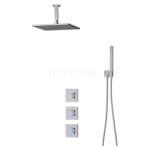 The Cubic rain shower set has a square design with a chrome finish and looks great in a modern bathroom. This concealed set includes a thermostatic mixer, 30 cm rain shower, ceiling arm, handheld mixer, handheld shower holder and shower hose. This gives you everything you need for your shower. Moreover, the rain and handheld shower feature Easy Clean, making it easy to limescale the jet controller. So you experience optimum ease of maintenance and cleaning.