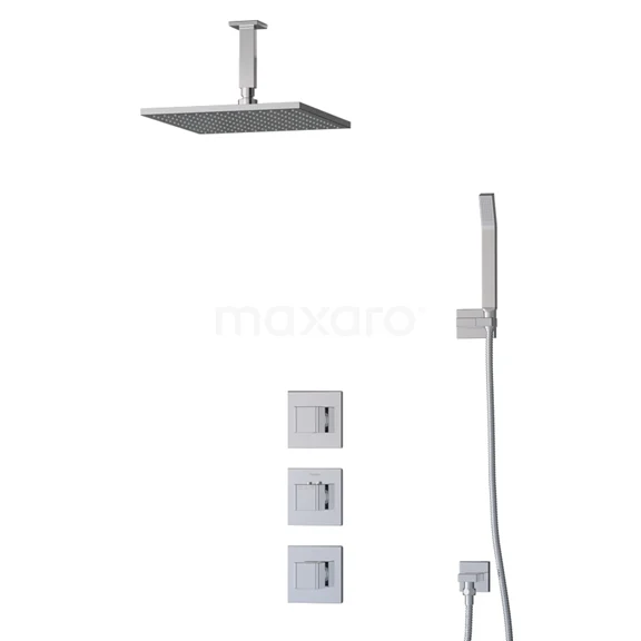 The Cubic rain shower set has a square design with a chrome finish and looks great in a modern bathroom. This concealed set includes a thermostatic mixer, 30 cm rain shower, ceiling arm, handheld mixer, handheld shower holder and shower hose. This gives you everything you need for your shower. Moreover, the rain and handheld shower are equipped with Easy Clean, making it easy to limescale the jet controller. So you experience optimum ease of maintenance and cleaning.