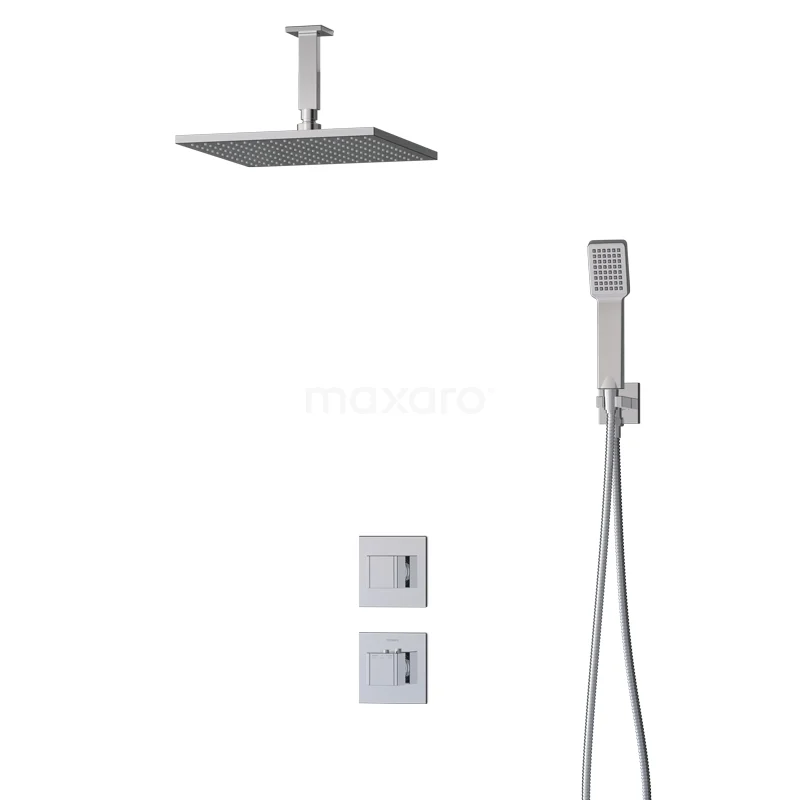 The Cubic rain shower set has a square design with a chrome finish and looks great in a modern bathroom. This concealed set includes a thermostatic mixer, 30 cm rain shower, ceiling arm, handheld mixer, handheld shower holder and shower hose. This gives you everything you need for your shower. Moreover, the rain and handheld shower feature Easy Clean, making it easy to limescale the jet controller. So you experience optimum ease of maintenance and cleaning.