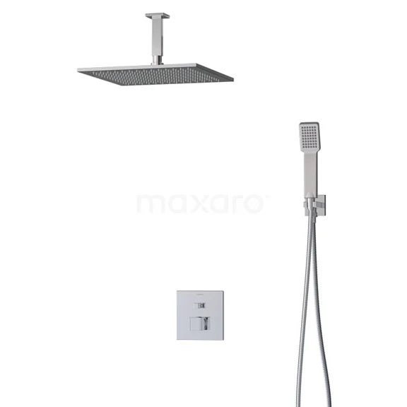 The Cubic rain shower set has a square design with a chrome finish and looks great in a modern bathroom. This concealed set includes a single lever mixer tap, 35 cm rain shower, ceiling arm, handheld shower, handheld shower holder and shower hose. This gives you everything you need for your showers. Moreover, the rain and handheld shower are equipped with Easy Clean, making it easy to limescale the jet controller. So you experience optimum ease of maintenance and cleaning.