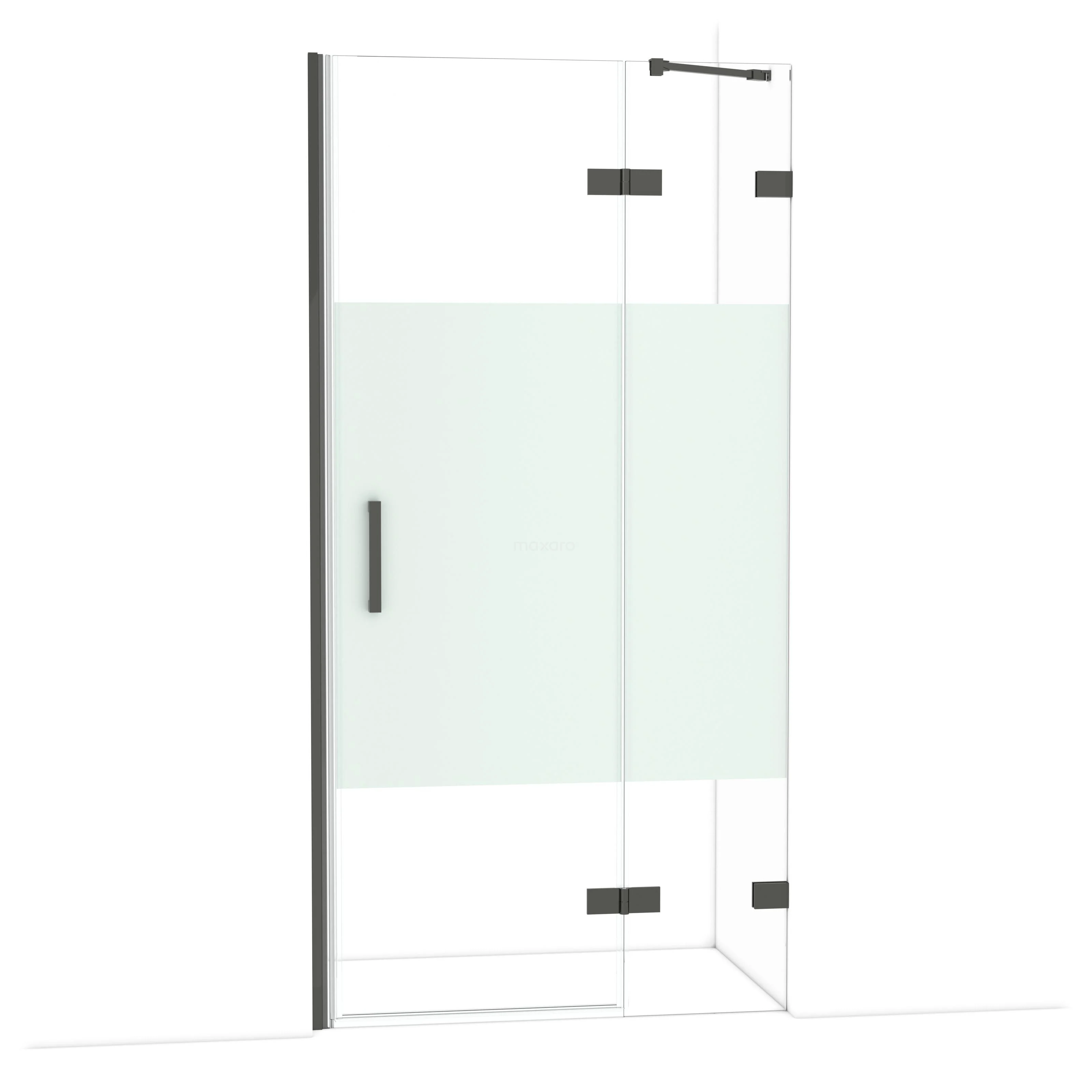 De Diamond-draaideur van 100 cm is ideaal om jouw douchenis af te sluiten. Dit exemplaar is afgewerkt in zwart chroom en is voorzien van hoogwaardige scharnieren, tweepuntsbevestiging en een verticaal handvat. Het helder glas met matte strook zorgt voor meer privacy. Door de verstelbaarheid maak je de douchedeur gemakkelijk passend. De totale breedte is verstelbaar van 101,7 tot en met 102,7 cm.