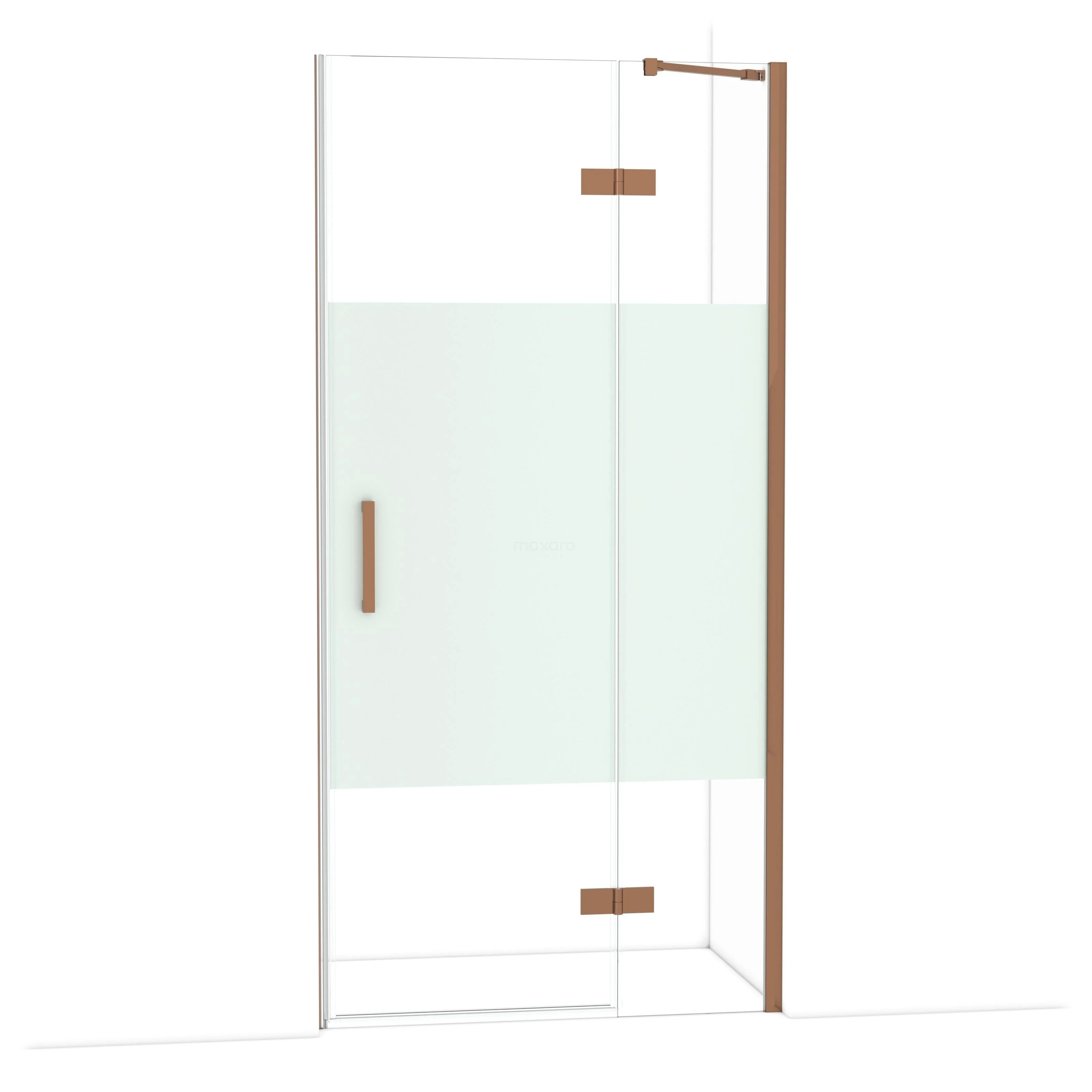 De Diamond-draaideur van 100 cm is ideaal om jouw douchenis af te sluiten. Dit exemplaar heeft een opvallend design van glanzend koper en is voorzien van hoogwaardige scharnieren, muurprofiel en een verticaal handvat. Het helder glas met matte strook zorgt voor meer privacy. Door de verstelbaarheid maak je de douchedeur gemakkelijk passend. De totale breedte is verstelbaar van 99,8 tot en met 101,3 cm.