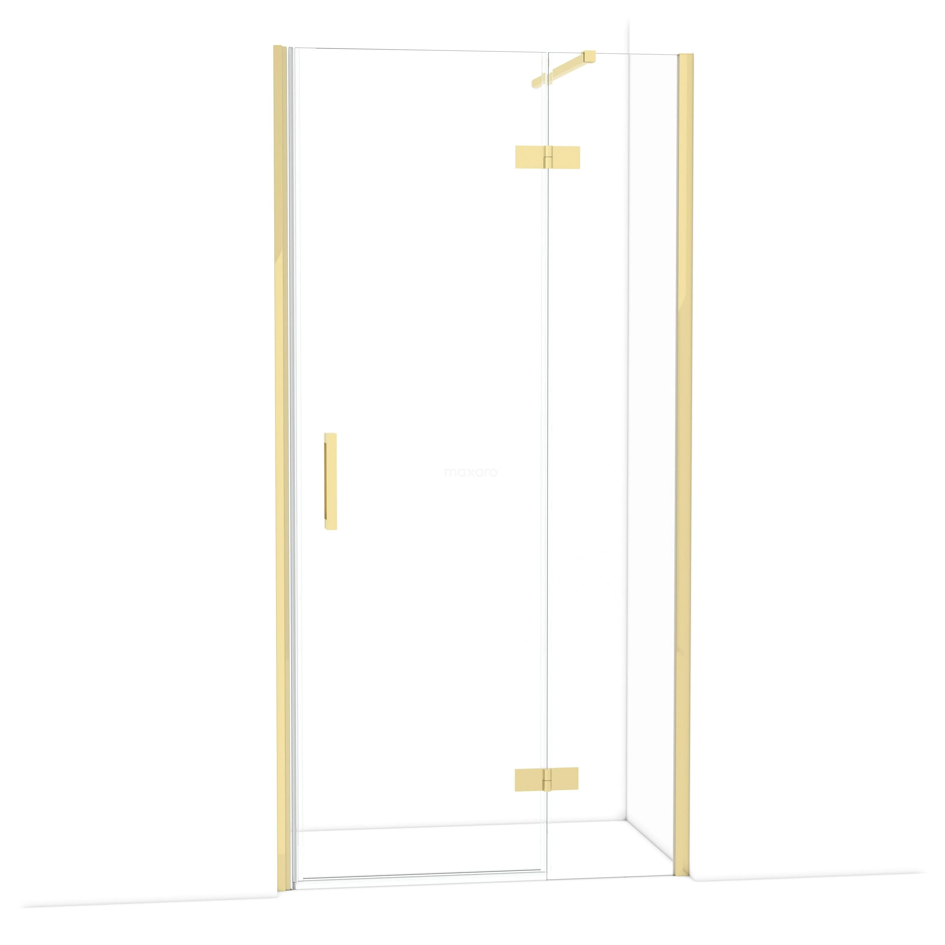 The Diamond hinged door of 100 cm is ideal for closing off your shower area. This model features a refined and luxurious design in glossy light gold and is equipped with high-quality hinges, wall profile, and a vertical handle. The clear glass provides a sense of spaciousness. Thanks to its adjustability, you can easily fit the shower door. The total width is adjustable from 101.8 to 104 cm.