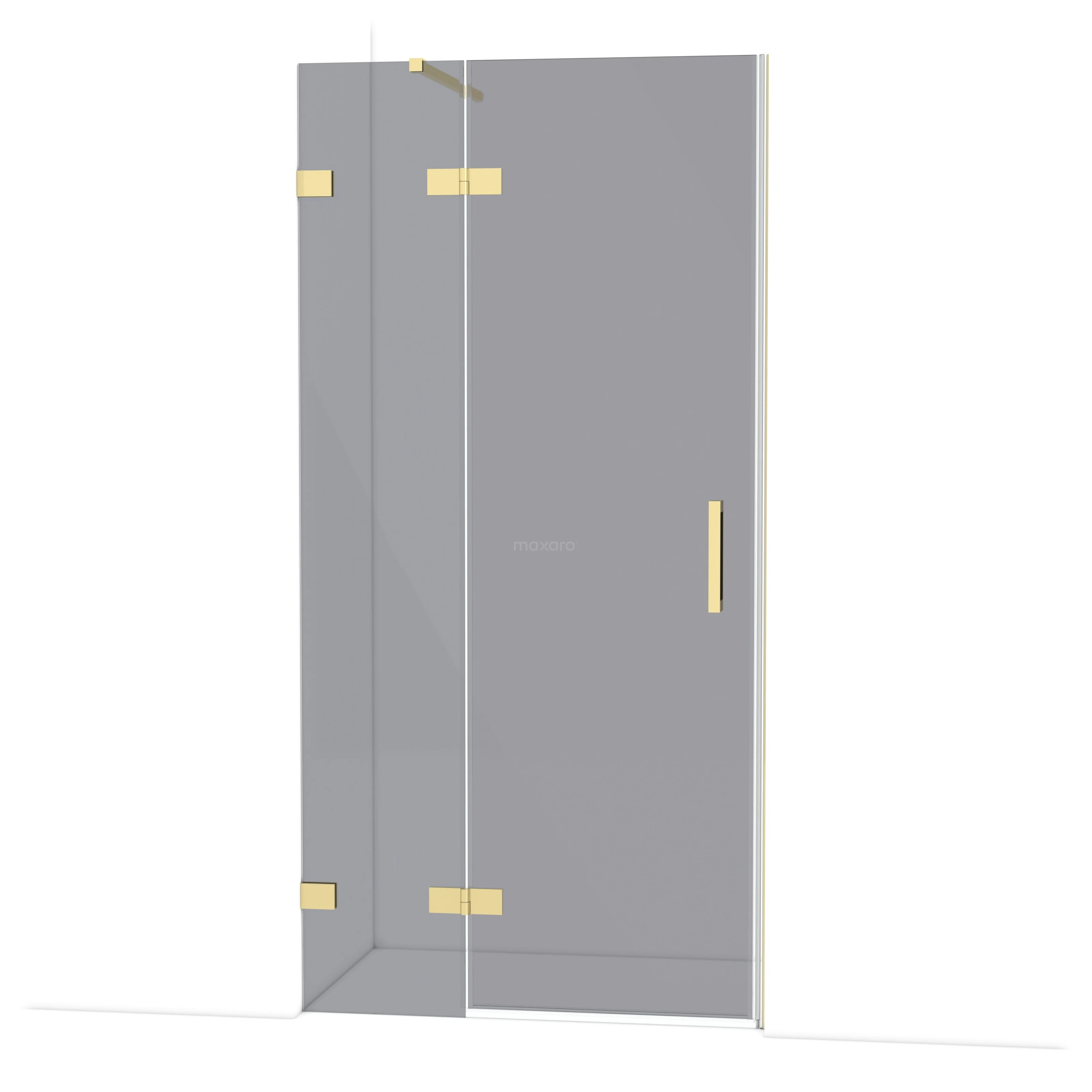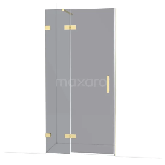 The 100 cm Diamond hinged door is ideal for closing off your shower area. This model features a refined and luxurious design in glossy light gold and is equipped with high-quality hinges, two-point fixation, and a vertical handle. The smoked glass adds a chic appearance. Thanks to its adjustability, you can easily make the shower door fit. The total width is adjustable from 99.7 to 100 cm.