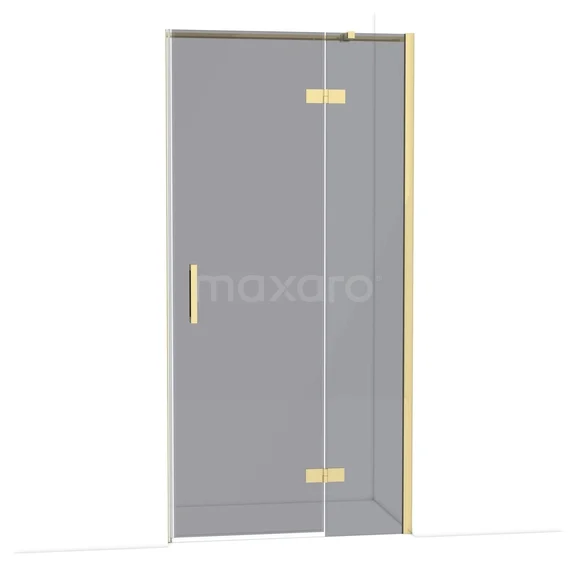 The Diamond hinged door of 100 cm is ideal for closing off your shower area. This model features a refined and luxurious design in glossy light gold and is equipped with high-quality hinges, wall profile, and a vertical handle. The smoked glass gives it a chic appearance. Thanks to its adjustability, you can easily make the shower door fit. The total width is adjustable from 99.8 to 101.3 cm.