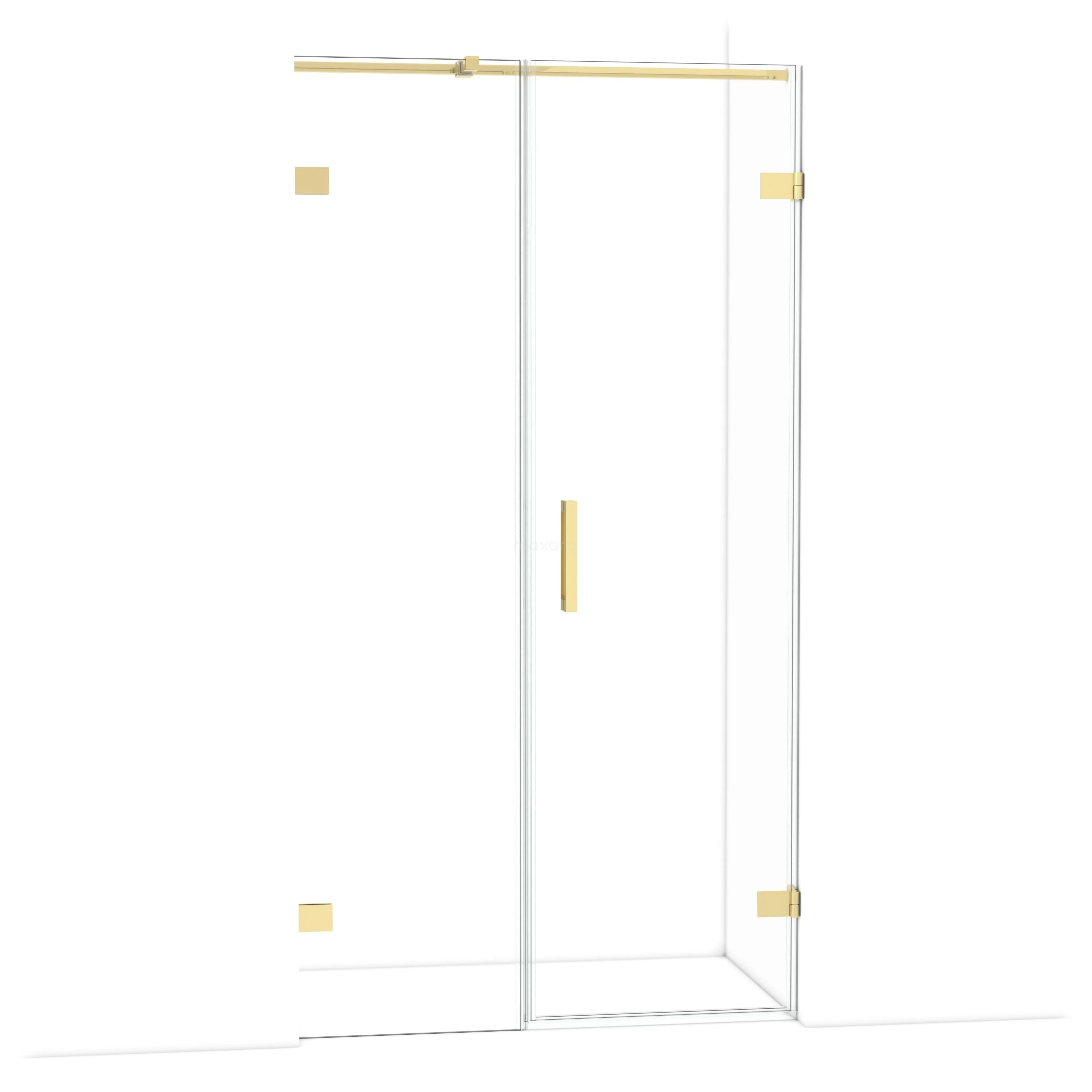 The Diamond hinged door of 105 cm is ideal for closing off your shower space. This model features a refined and luxurious design in shiny light gold and is equipped with high-quality wall hinges and a vertical handle. The clear glass provides a sense of spaciousness. Thanks to its adjustability, you can easily make the shower door fit. The total width is adjustable from 105.6 to 105.9 cm.