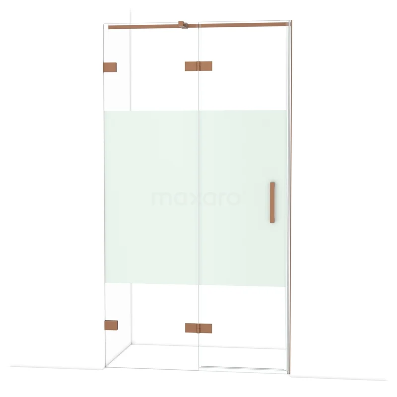 De Diamond-draaideur van 110 cm is ideaal om jouw douchenis af te sluiten. Dit exemplaar is afgewerkt in koper en is voorzien van hoogwaardige scharnieren, tweepuntsbevestiging en een verticaal handvat. Het helder glas met matte strook zorgt voor meer privacy. Door de verstelbaarheid maak je de douchedeur gemakkelijk passend. De totale breedte is verstelbaar van 109,7 tot en met 110 cm.