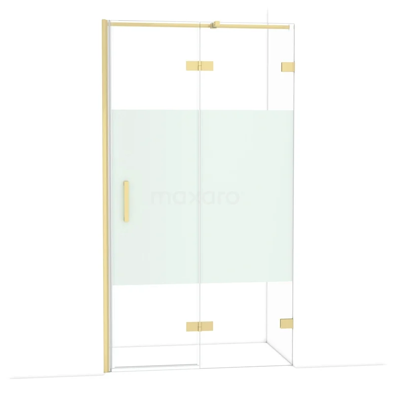 De Diamond-draaideur van 110 cm is ideaal om jouw douchenis af te sluiten. Dit exemplaar heeft een lichtgouden afwerking en is voorzien van hoogwaardige scharnieren, tweepuntsbevestiging en een verticaal handvat. Het helder glas met matte strook zorgt voor meer privacy. Door de verstelbaarheid maak je de douchedeur gemakkelijk passend. De totale breedte is verstelbaar van 111,7 tot en met 112,7 cm.