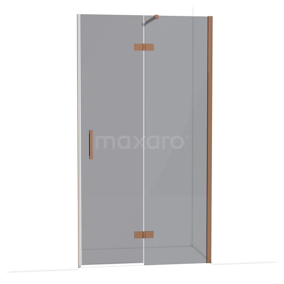 The Diamond hinged door of 110 cm is ideal for closing off your shower space. This model features a striking design in shiny copper and is equipped with high-quality hinges, wall profiles, and a vertical handle. The smoked glass provides a chic appearance. Thanks to its adjustability, you can easily make the shower door fit. The total width is adjustable from 109.8 to 111.3 cm.