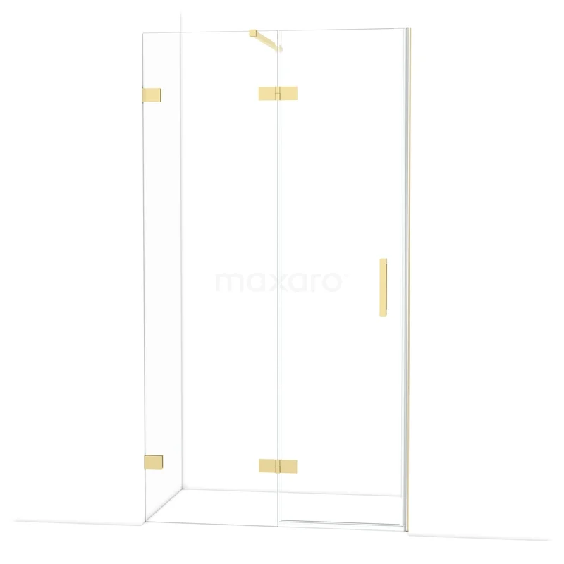 The Diamond hinged door of 110 cm is ideal for closing off your shower area. This model features a refined and luxurious design in glossy light gold and is equipped with high-quality hinges, two-point fixation, and a vertical handle. The clear glass provides a sense of spaciousness. Thanks to its adjustability, you can easily make the shower door fit. The total width is adjustable from 109.7 to 110 cm.