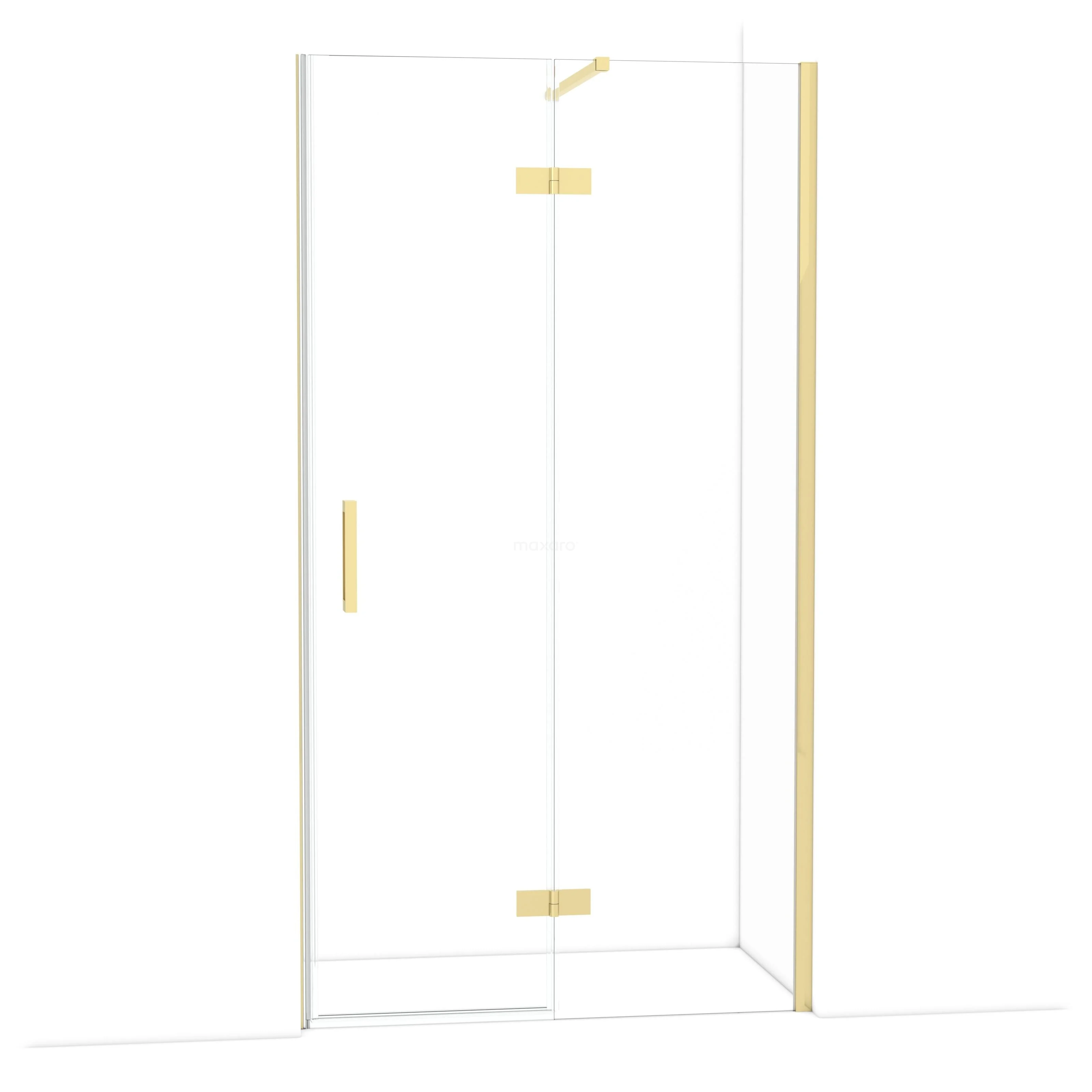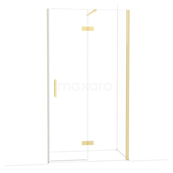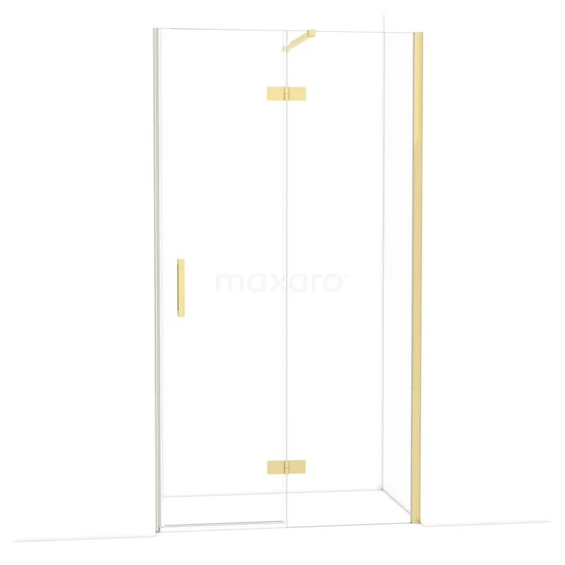 The Diamond hinged door of 110 cm is ideal for closing off your shower area. This model features a refined and luxurious design in glossy light gold and is equipped with high-quality hinges, wall profiles, and a vertical handle. The clear glass provides a sense of spaciousness. Thanks to its adjustability, you can easily fit the shower door. The total width is adjustable from 109.8 to 111.3 cm.