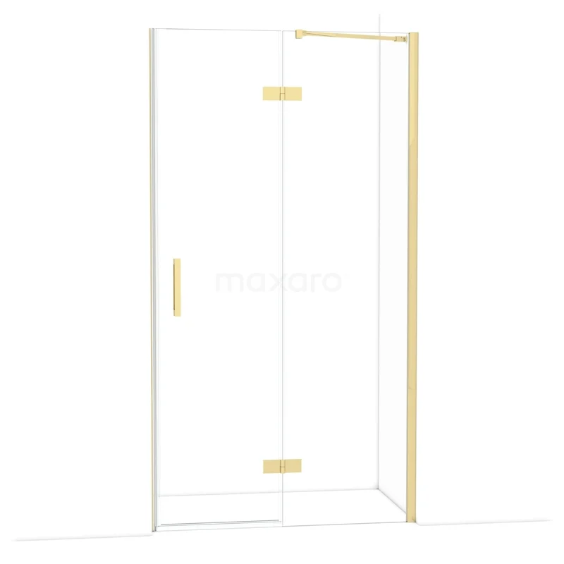 The Diamond hinged door of 110 cm is ideal for closing off your shower area. This model features a refined and luxurious design in glossy light gold and is equipped with high-quality hinges, wall profiles, and a vertical handle. The clear glass provides a sense of spaciousness. Thanks to its adjustability, you can easily fit the shower door. The total width is adjustable from 109.8 to 111.3 cm.