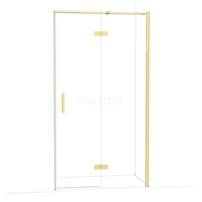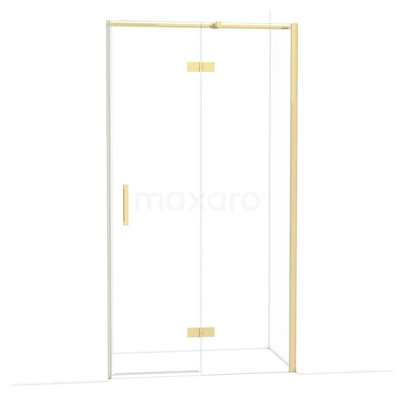 The Diamond hinged door of 110 cm is ideal for closing off your shower area. This model features a refined and luxurious design in glossy light gold and is equipped with high-quality hinges, wall profiles, and a vertical handle. The clear glass provides a sense of spaciousness. Thanks to its adjustability, you can easily fit the shower door. The total width is adjustable from 109.8 to 111.3 cm.