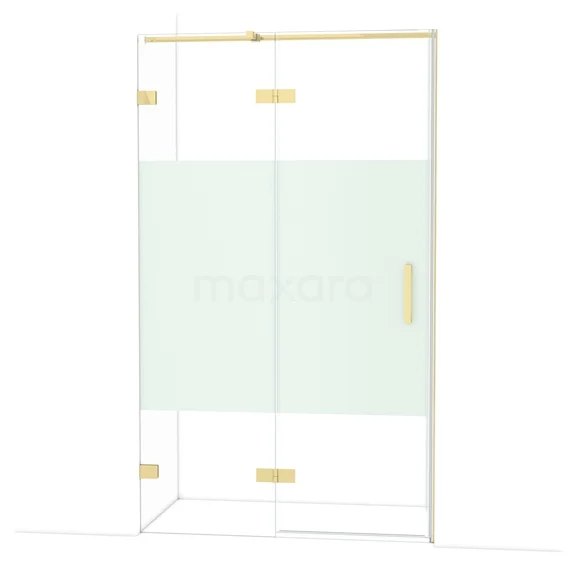 Diamond Shower door | 120 cm Glanzend lichtgoud Clear with matt strip Pivot door