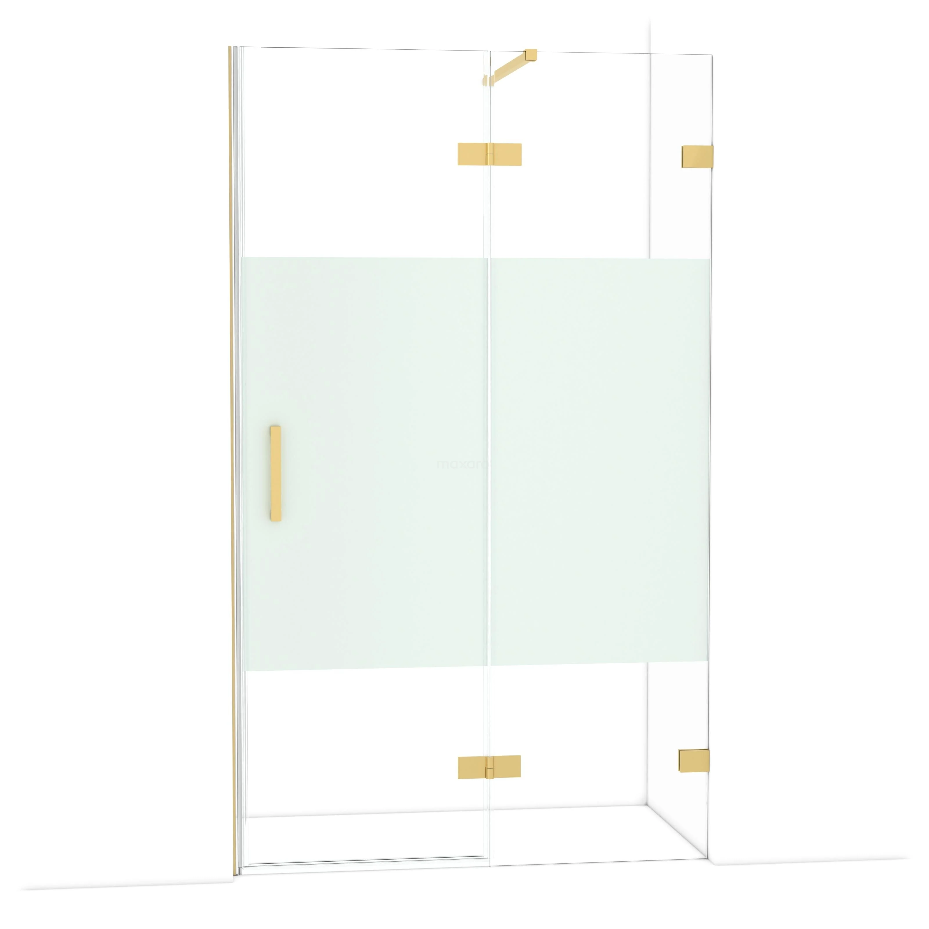 De Diamond-draaideur van 120 cm is ideaal om jouw douchenis af te sluiten. Dit exemplaar heeft een luxe design van goud en is voorzien van hoogwaardige scharnieren, tweepuntsbevestiging en een verticaal handvat. Het helder glas met matte strook zorgt voor meer privacy. Door de verstelbaarheid maak je de douchedeur gemakkelijk passend. De totale breedte is verstelbaar van 119,7 tot en met 120 cm.