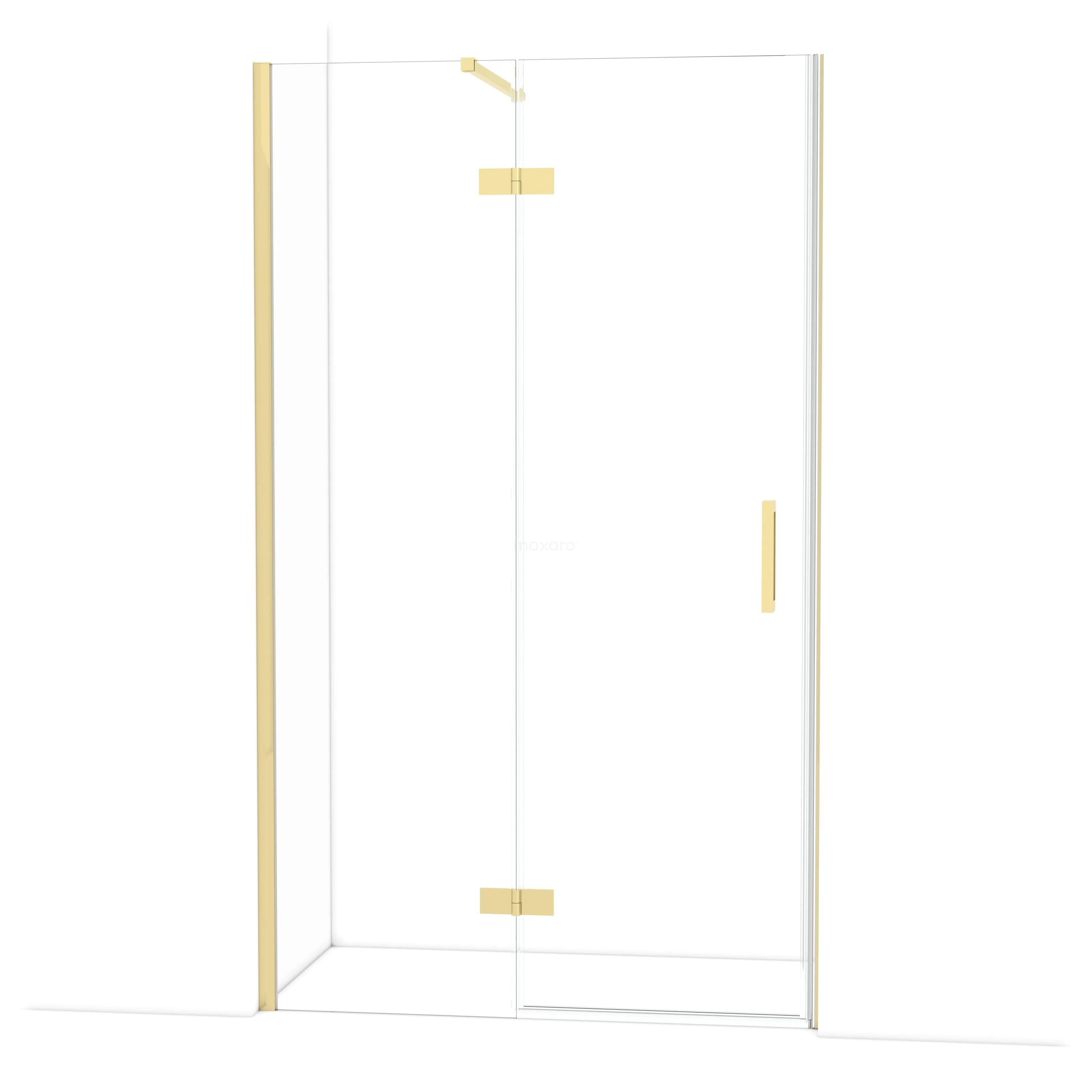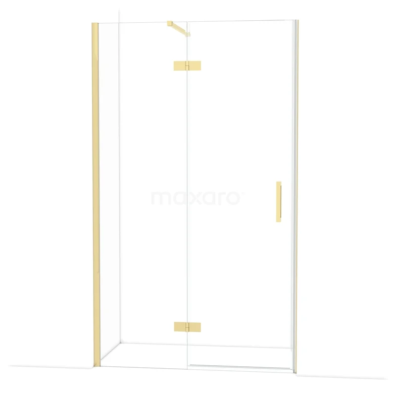 The 120 cm Diamond hinged door is ideal for closing off your shower area. This model features a refined and luxurious design in shiny light gold and is equipped with high-quality hinges, wall profile, and a vertical handle. The clear glass provides a sense of spaciousness. Thanks to its adjustability, you can easily make the shower door fit. The total width is adjustable from 119.8 to 121.3 cm.