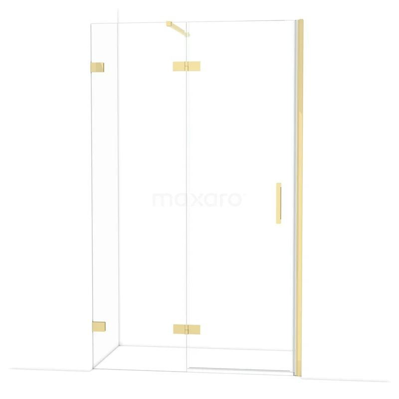 The Diamond hinged door of 120 cm is ideal for closing off your shower area. This model features a refined and luxurious design in glossy light gold and is equipped with high-quality hinges, two-point fixation, and a vertical handle. The clear glass provides a sense of space. Thanks to its adjustability, you can easily make the shower door fit. The total width is adjustable from 121.7 to 122.7 cm.