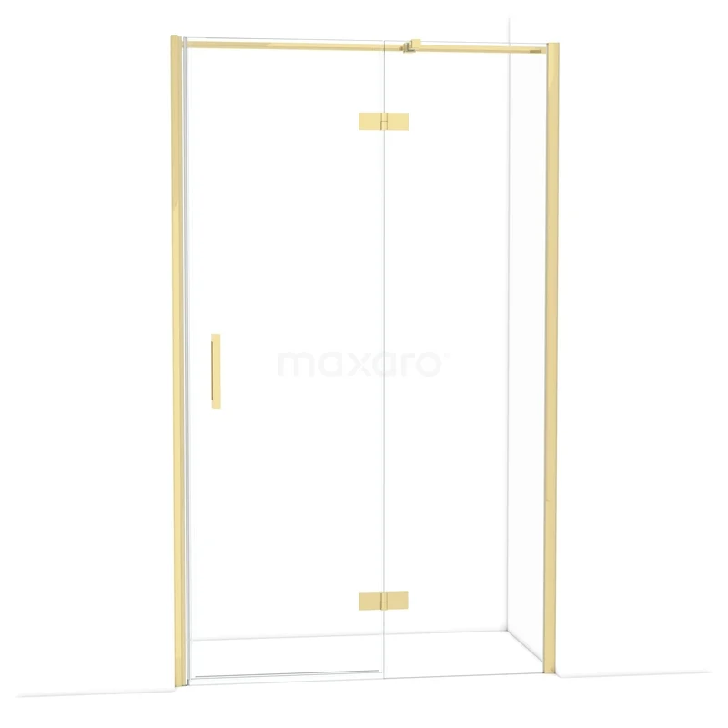 The Diamond hinged door of 120 cm is ideal for closing off your shower area. This model features a refined and luxurious design in glossy light gold and is equipped with high-quality hinges, wall profile, and a vertical handle. The clear glass provides a sense of space. Thanks to its adjustability, you can easily make the shower door fit. The total width is adjustable from 121.8 to 124 cm.