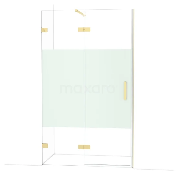 Diamond Shower door | 120 cm Shiny light gold Clear with matt strip Pivot door
