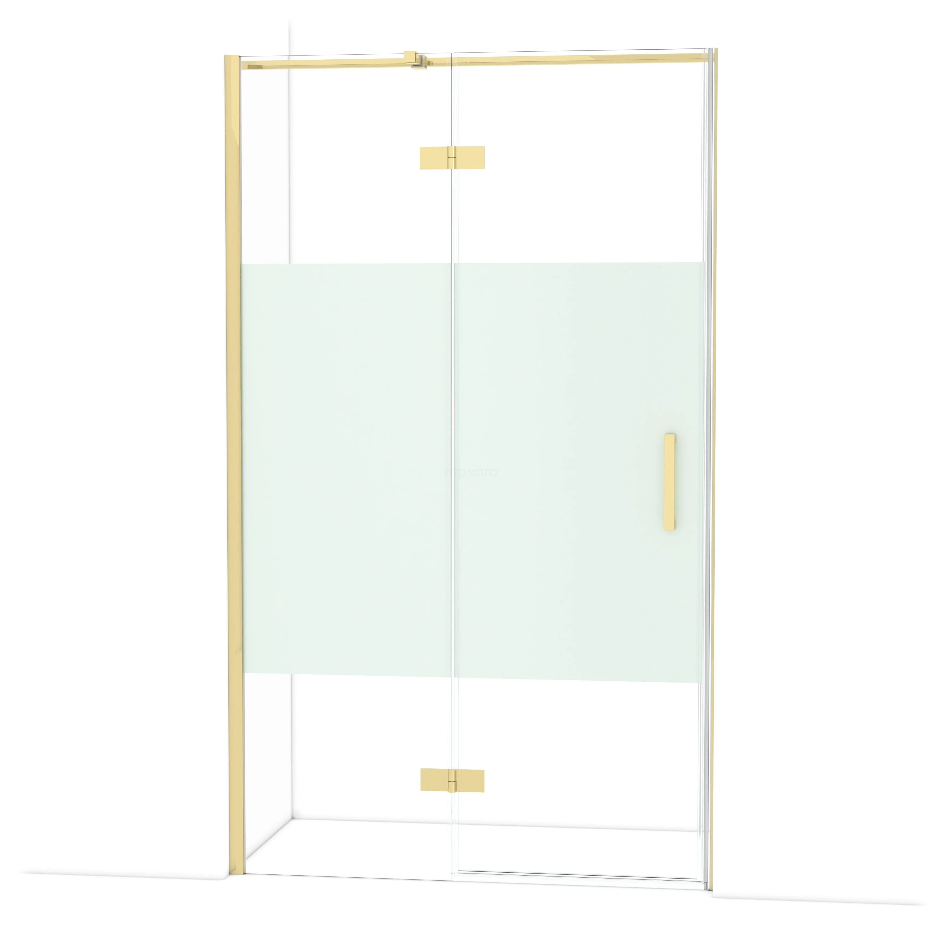 Diamond Shower door | 120 cm Shiny light gold Clear with matt strip Pivot door