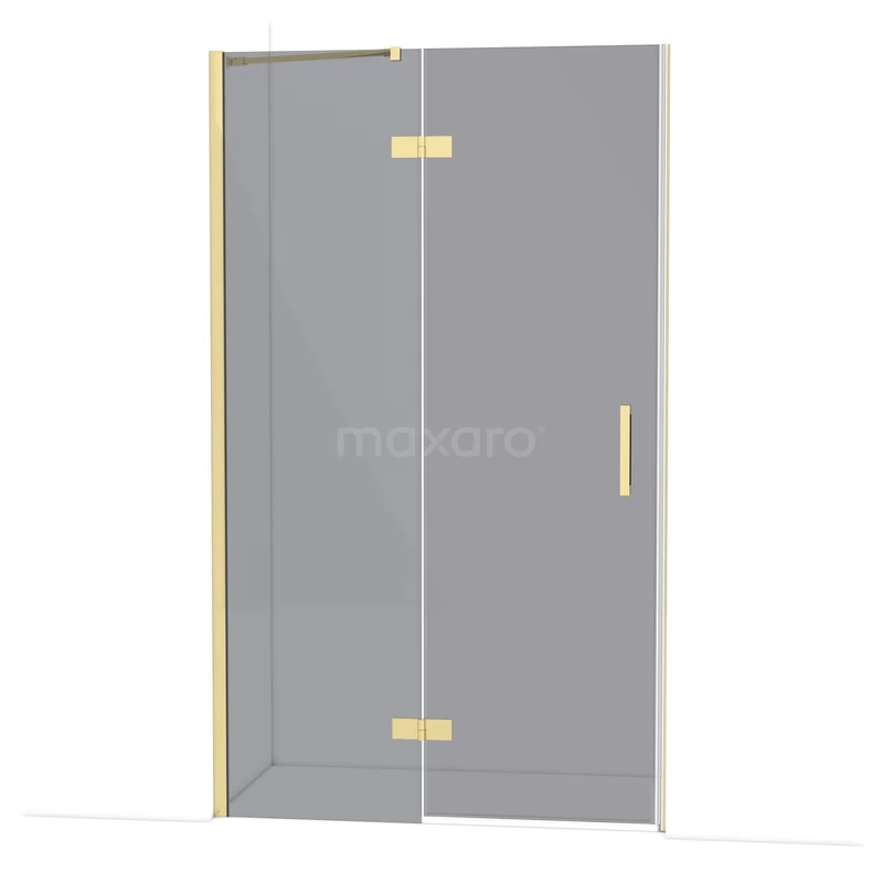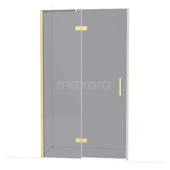 The Diamond hinged door of 120 cm is ideal for closing off your shower area. This model features a refined and luxurious design in glossy light gold and is equipped with high-quality hinges, wall profiles, and a vertical handle. The smoked glass adds a chic appearance. Thanks to its adjustability, you can easily make the shower door fit. The total width is adjustable from 119.8 to 121.3 cm.