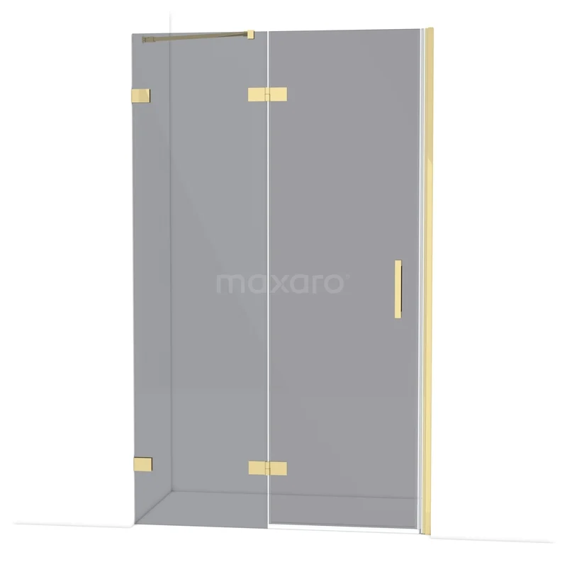The 120 cm Diamond hinged door is ideal for closing off your shower space. This model features a refined and luxurious design in shiny light gold and is equipped with high-quality hinges, two-point fixation, and a vertical handle. The smoked glass adds a chic appearance. Thanks to its adjustability, you can easily make the shower door fit. The total width is adjustable from 121.7 to 122.7 cm.