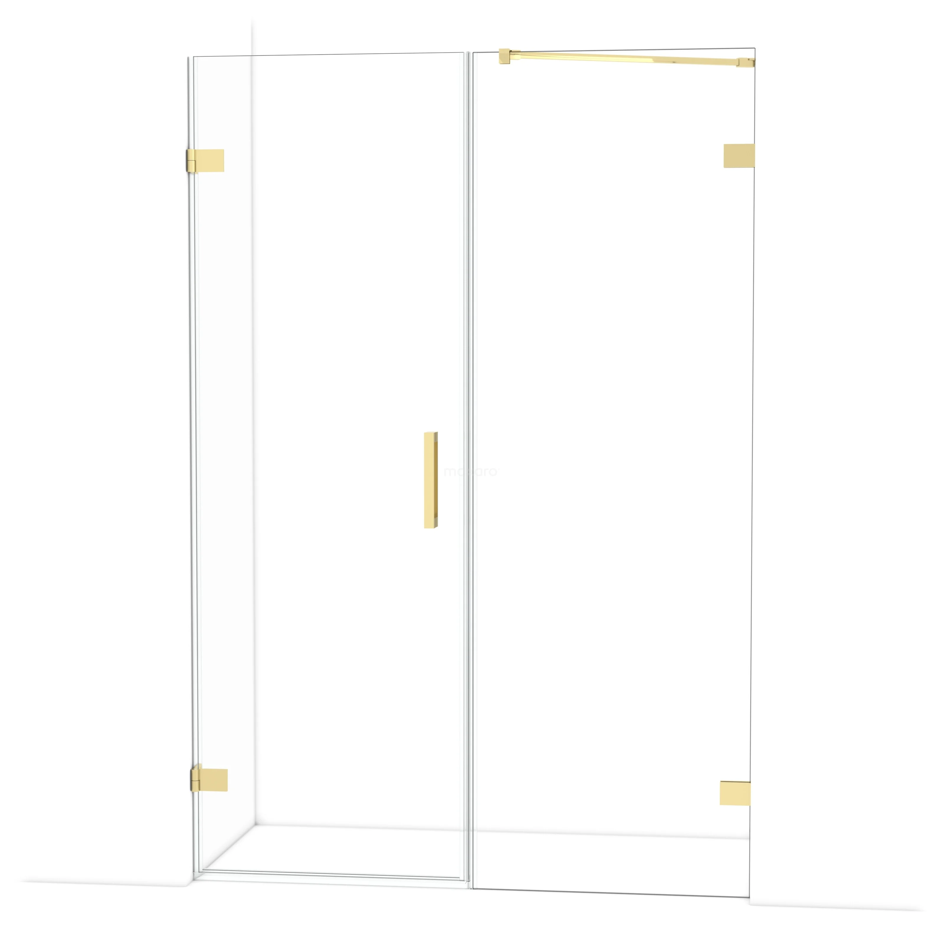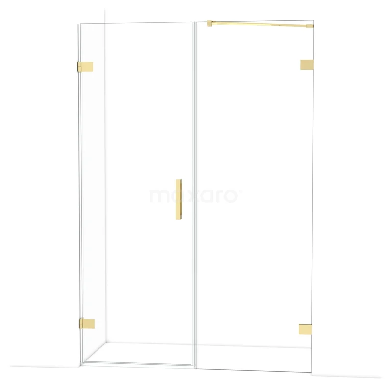 The Diamond hinged door of 135 cm is ideal for closing off your shower space. This model features a refined and luxurious design in glossy light gold and is equipped with high-quality wall hinges and a vertical handle. The clear glass provides a sense of spaciousness. Thanks to its adjustability, you can easily make the shower door fit. The total width is adjustable from 135.6 to 135.9 cm.