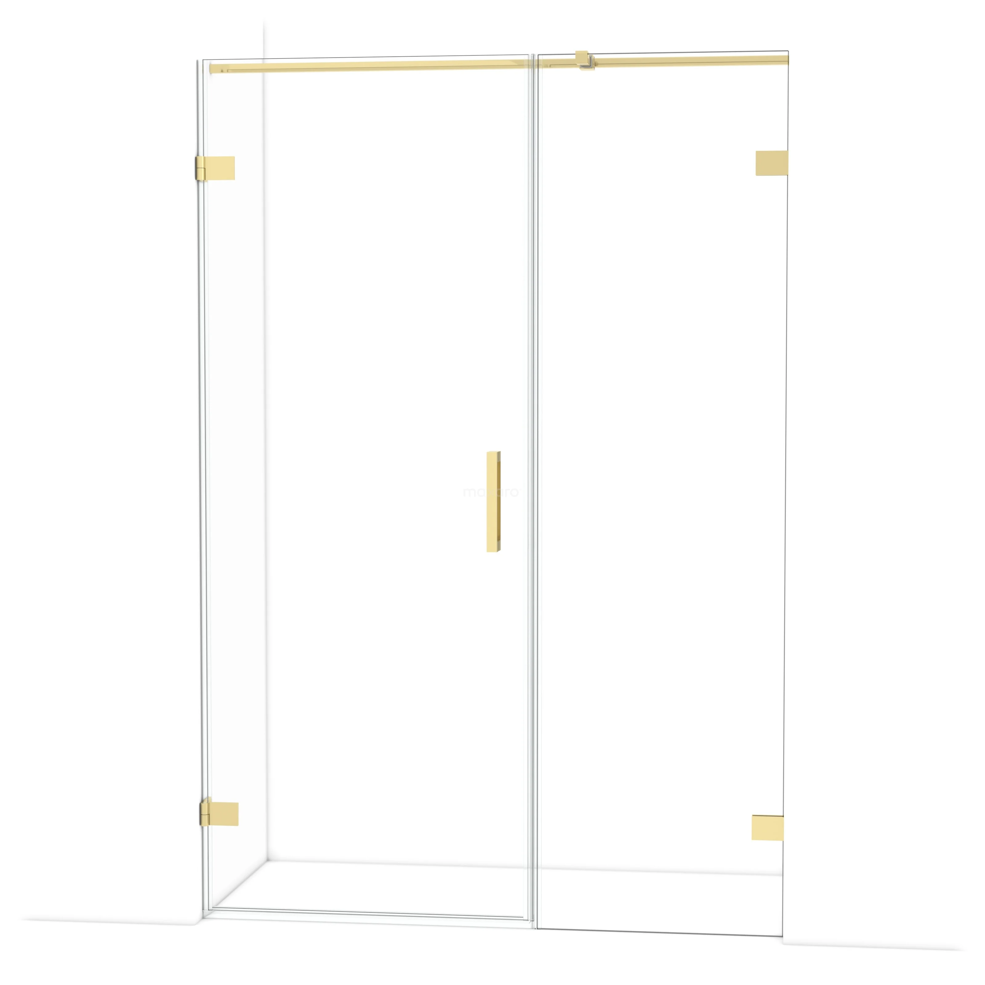 The Diamond hinged door of 135 cm is ideal for closing off your shower space. This model features a refined and luxurious design in glossy light gold and is equipped with high-quality wall hinges and a vertical handle. The clear glass provides a sense of spaciousness. Thanks to its adjustability, you can easily make the shower door fit. The total width is adjustable from 135.6 to 135.9 cm.