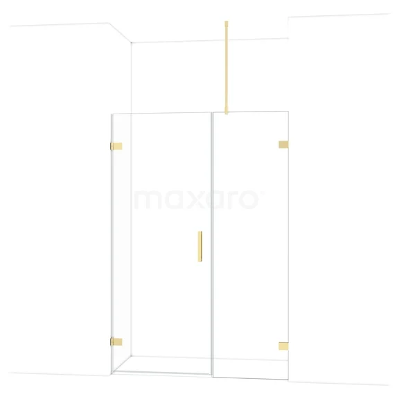 The Diamond hinged door of 135 cm is ideal for closing off your shower space. This model features a refined and luxurious design in glossy light gold and is equipped with high-quality wall hinges and a vertical handle. The clear glass provides a sense of spaciousness. Thanks to its adjustability, you can easily make the shower door fit. The total width is adjustable from 135.6 to 135.9 cm.