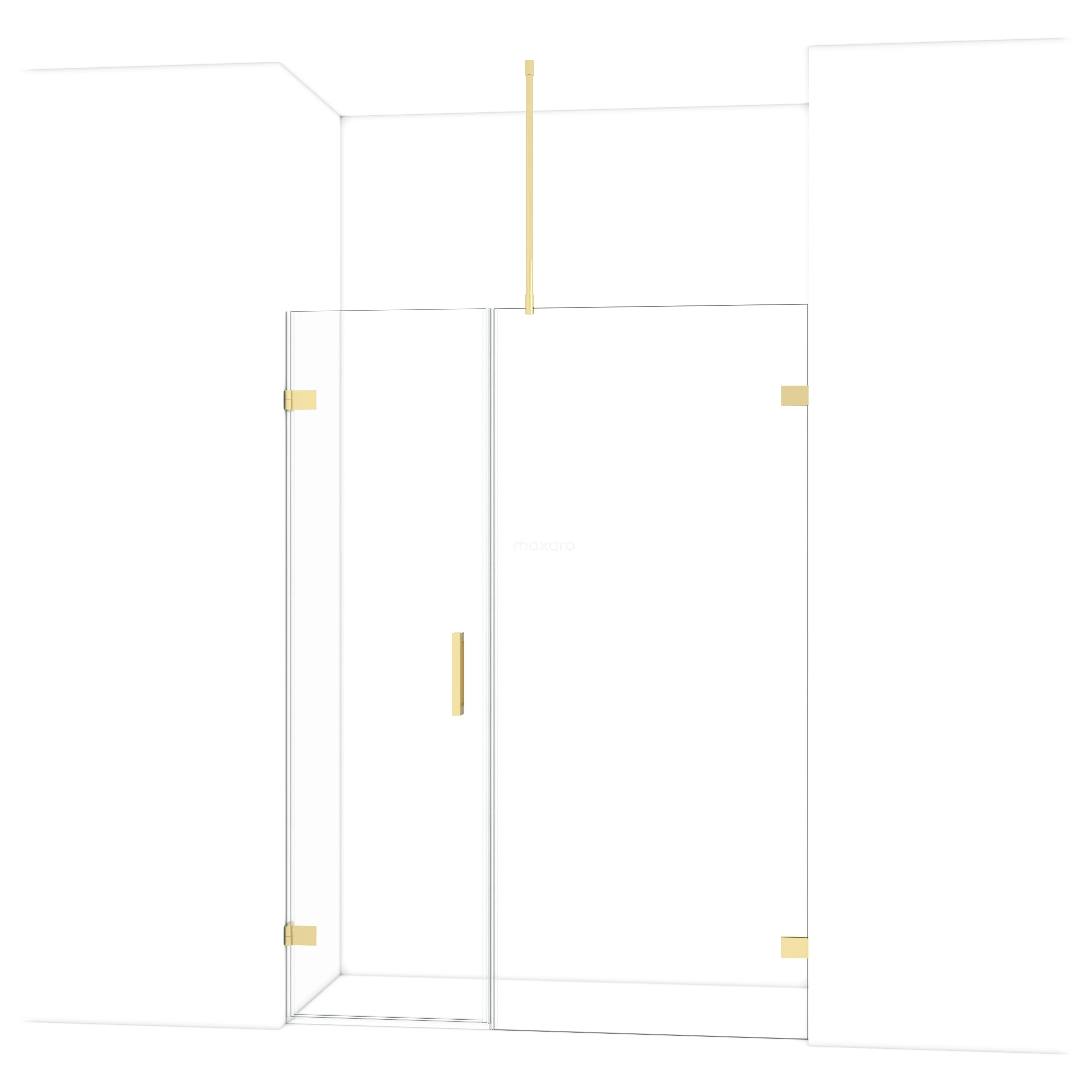 The Diamond hinged door of 145 cm is ideal for closing off your shower space. This model features a refined and luxurious design in glossy light gold and is equipped with high-quality wall hinges and a vertical handle. The clear glass provides a sense of spaciousness. Thanks to its adjustability, you can easily make the shower door fit. The total width is adjustable from 145.6 to 145.9 cm.