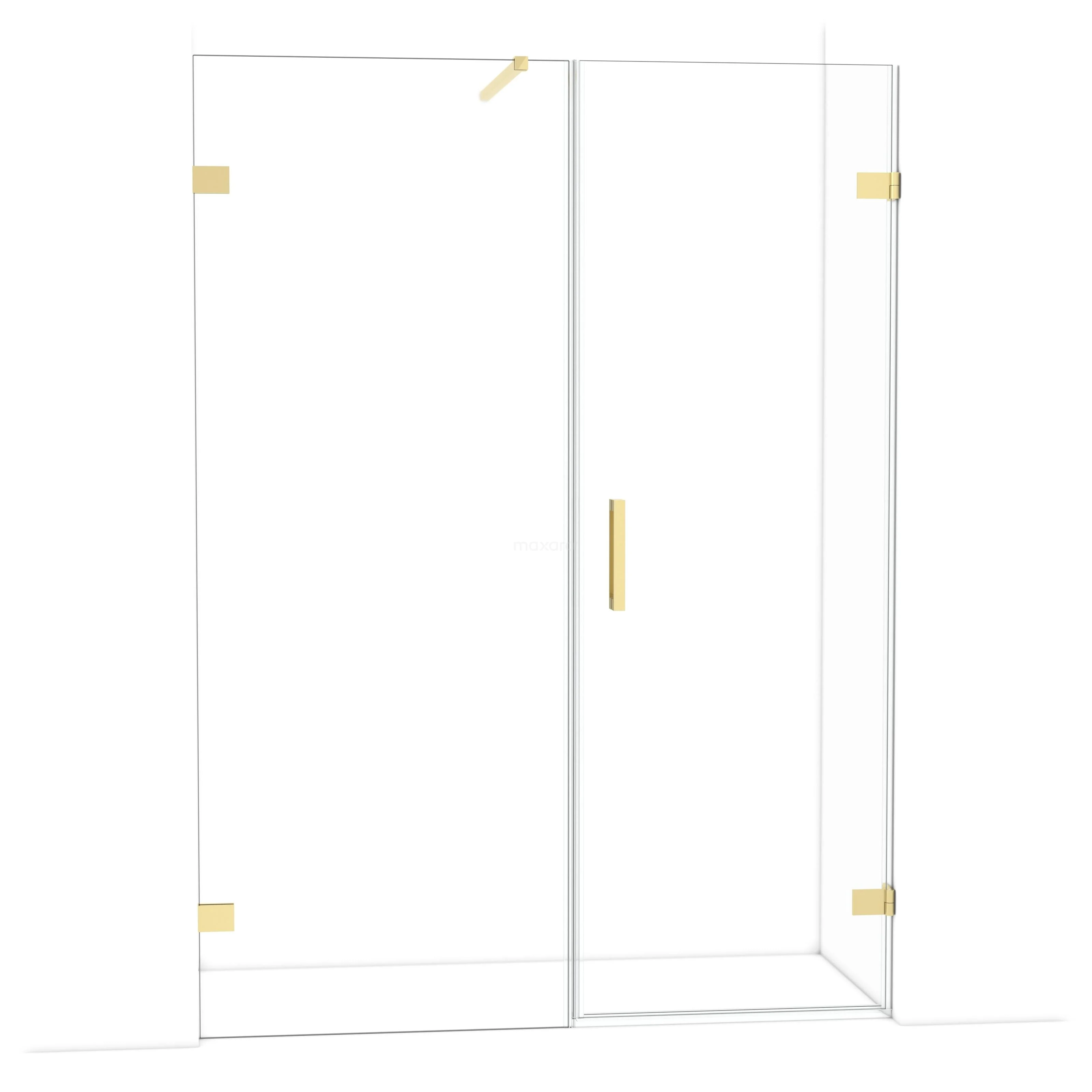 The Diamond hinged door of 145 cm is ideal for closing off your shower space. This model features a refined and luxurious design in glossy light gold and is equipped with high-quality wall hinges and a vertical handle. The clear glass provides a sense of spaciousness. Thanks to its adjustability, you can easily make the shower door fit. The total width is adjustable from 145.6 to 145.9 cm.