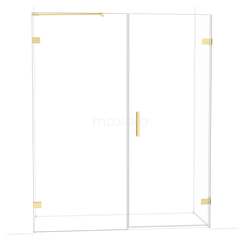 The Diamond hinged door of 165 cm is ideal for closing off your shower area. This model features a refined and luxurious design in glossy light gold and is equipped with high-quality wall hinges and a vertical handle. The clear glass provides a sense of spaciousness. Thanks to its adjustability, you can easily make the shower door fit. The total width is adjustable from 165.6 to 165.9 cm.