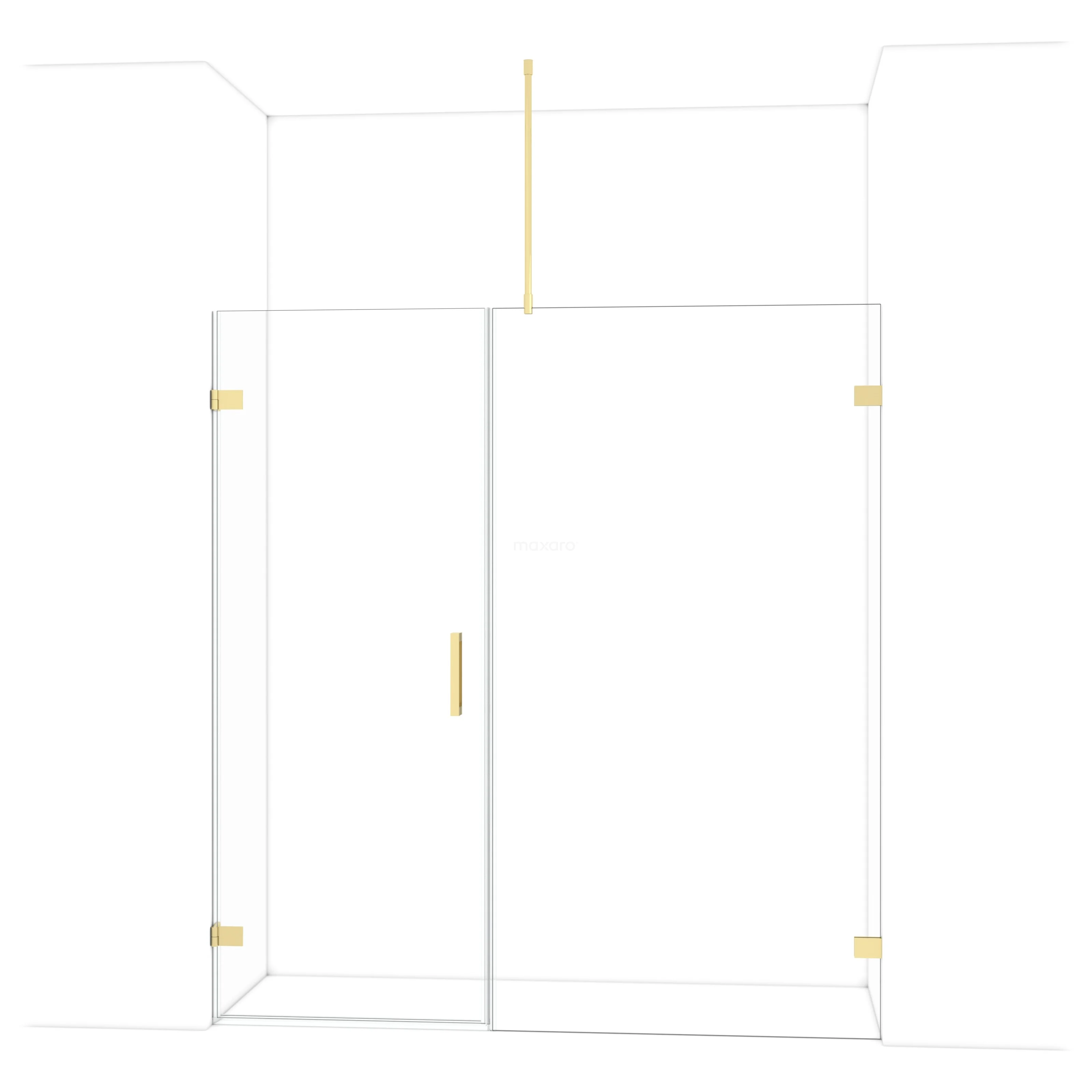 The Diamond hinged door of 185 cm is ideal for closing off your shower space. This model features a refined and luxurious design in glossy light gold and is equipped with high-quality wall hinges and a vertical handle. The clear glass provides a sense of spaciousness. Thanks to its adjustability, you can easily make the shower door fit. The total width is adjustable from 185.6 to 185.9 cm.
