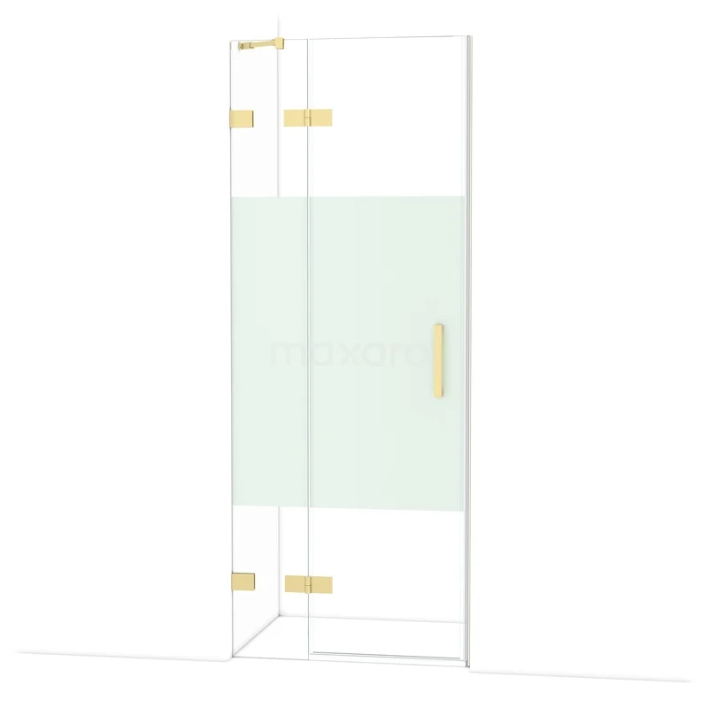 De Diamond-draaideur van 80 cm is ideaal om jouw douchenis af te sluiten. Dit exemplaar heeft een verfijnd en luxe design van glanzend lichtgoud en is voorzien van hoogwaardige scharnieren, tweepuntsbevestiging en een verticaal handvat. Het helder glas met matte strook zorgt voor meer privacy. Door de verstelbaarheid maak je de douchedeur gemakkelijk passend. De totale breedte is verstelbaar van 79,7 tot en met 80 cm.
