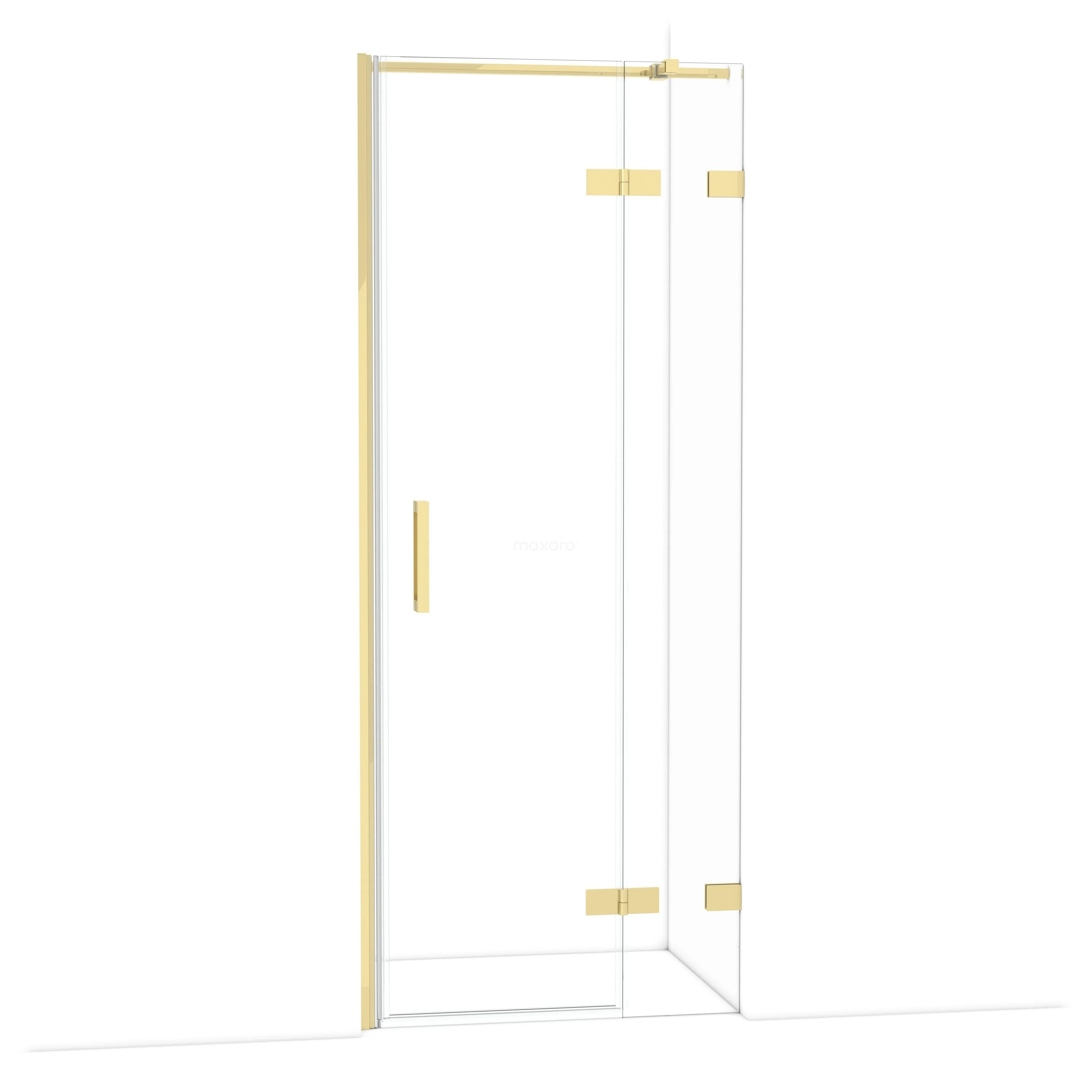 The Diamond hinged door of 80 cm is ideal for closing off your shower space. This model features a refined and luxurious design in shiny light gold and is equipped with high-quality hinges, two-point fixation, and a vertical handle. The clear glass provides a sense of spaciousness. Thanks to its adjustability, you can easily make the shower door fit. The total width is adjustable from 81.7 to 82.7 cm.